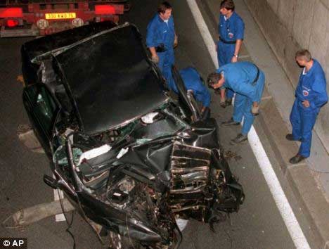 -0giờ 00 –Chủ nhật 31-8: Hai chiếc Mercedes rời khách sạn Ritz, nối đuôi nhau. Đây cũng là một hỏa mù khác để “cắt đuôi” các phóng viên ảnh. Lặng lẻ, chiếc thứ ba từ chỗ đậu xe riêng trong khách sạn, âm thầm ra đi, trên xe có Diana và Dodi. Đấy là chiếc Mercedes 280 S đen, trọng lượng 1,9 tấn với sức mạnh 194 mã lực giúp xe có thể dễ dàng đạt đến tốc độ 210 km/giờ. Xe vượt qua đường Cambon với sự bám theo của vài phóng viên ảnh trên xe gắn máy, mô tô và một chiếc Fiat Uno. Lady Di và Dodi ngồi phía sau, phía trước là hộ vệ Trevor Rees-Jones và chính trưởng ban an ninh Henri Paul là người cầm lái. Xe vượt qua đường Rivoli, quãng trường Concorde…Anh tăng tốc để “cắt đuôi” của các môtô, scooters săn tin đang cách họ khoảng 200 met. Tốc độ xe lên đến 198 km/giờ. Xe chuẩn bị vào đường hầm dưới cầu Alma và gặp một chiếc xe hơi đang chạy phía trước với tốc độ 50 km/ giờ (tốc độ cho phép). Để tránh chiếc xe này, chiếc Mercedes tăng tốc để qua mặt.